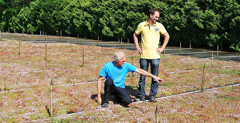 Wie es sich für eine gut funktionierende Unternehmersfamilie gehört, ist unsere Arbeitsverteilung gut geregelt. Die Gründergeneration konzentriert sich auf das Aufziehen der Sedumpflanzen. Die zweite Generation hat sich vollkommen spezialisiert auf die Anlage der Dachbegrünungen. Die Basis formt dabei die Gartenbau-Ausbildung von Arjan in Zwolle. Ergänzt durch die Zusatzausbildung für das Anlegen von Dachbegrünungen in Arnheim. Egal welche Fragen sich also für Sie ergeben: ob zu den Pflanzen oder zum Anlegen des Gründaches: in unserer Familie ist das Wissen vorhanden, Ihnen schnell und unbürokratisch weiter zu helfen.